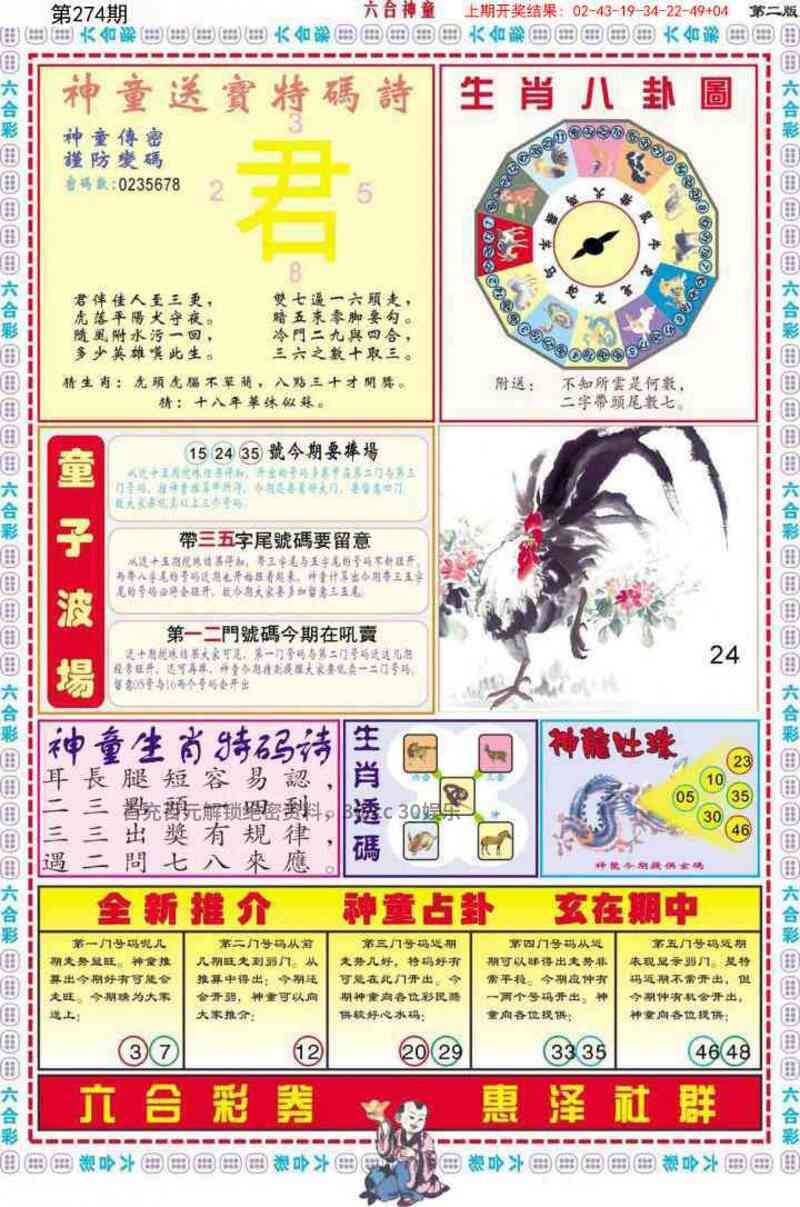 传真274期 今期生肖四五开,农民视它家中宝 一生之计在于辰,一言必中在掌中 二五相合一七开,龙吟虎啸一时发 白姐指美在七九,选好特码快下手 节外生枝 同室操戈解:今期生肖四五开,农民视它家中宝。四五解鸡,一生之计在于辰,一言必中在掌中。一解蛇,辰解龙,二五相合一七开,龙吟虎啸一时发。二五解蛇,一七解牛。白姐指美在七九,选好特码快下手。七九解猪鸡 拐特生肖:鸡蛇龙牛猪猴马羊狗 |